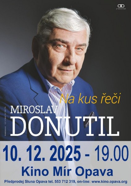 Populární herec, bavič a vypravěč Miroslav Donutil vás navštíví s novým programem své one man show Na kus řeči. Umělec si pro vás opět připravil skvělé historky, nové příběhy a zážitky, tak se máte na co těšit.